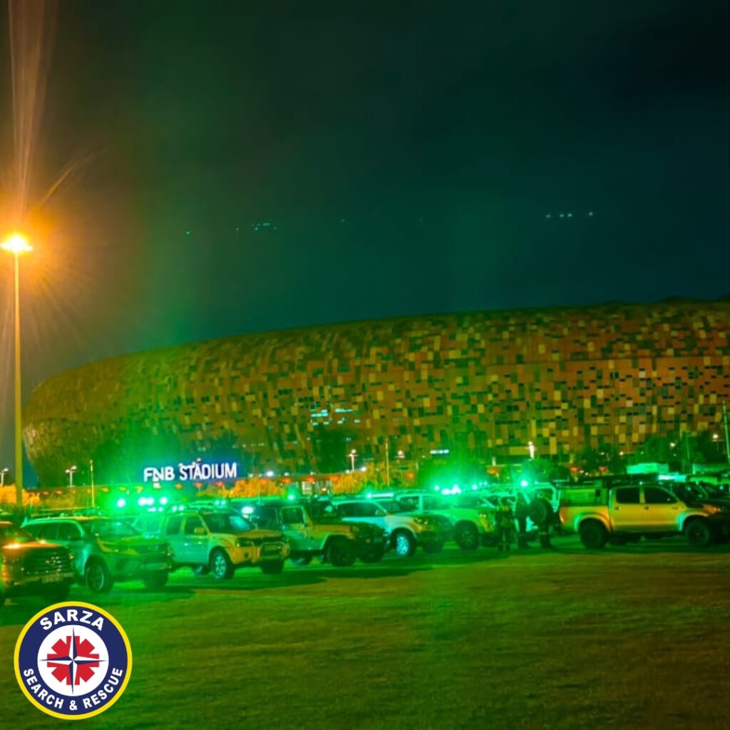 During the day, SARZA is in command and control of communication and logistics. Each point is manned with SARZA alongside JMPD Metro Police and Netcare 911.